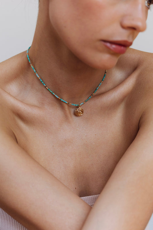 Coffret collier Queen + 1 grand Trésor 綠松石玫瑰項鍊/手鍊(一飾兩用)