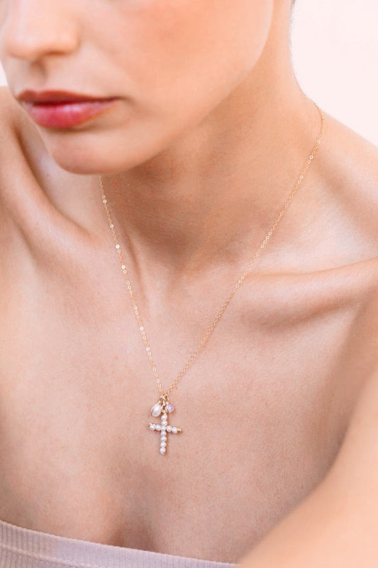 Pendentif Véra - Or 維拉金珠十字架吊墜 (不含金鍊)