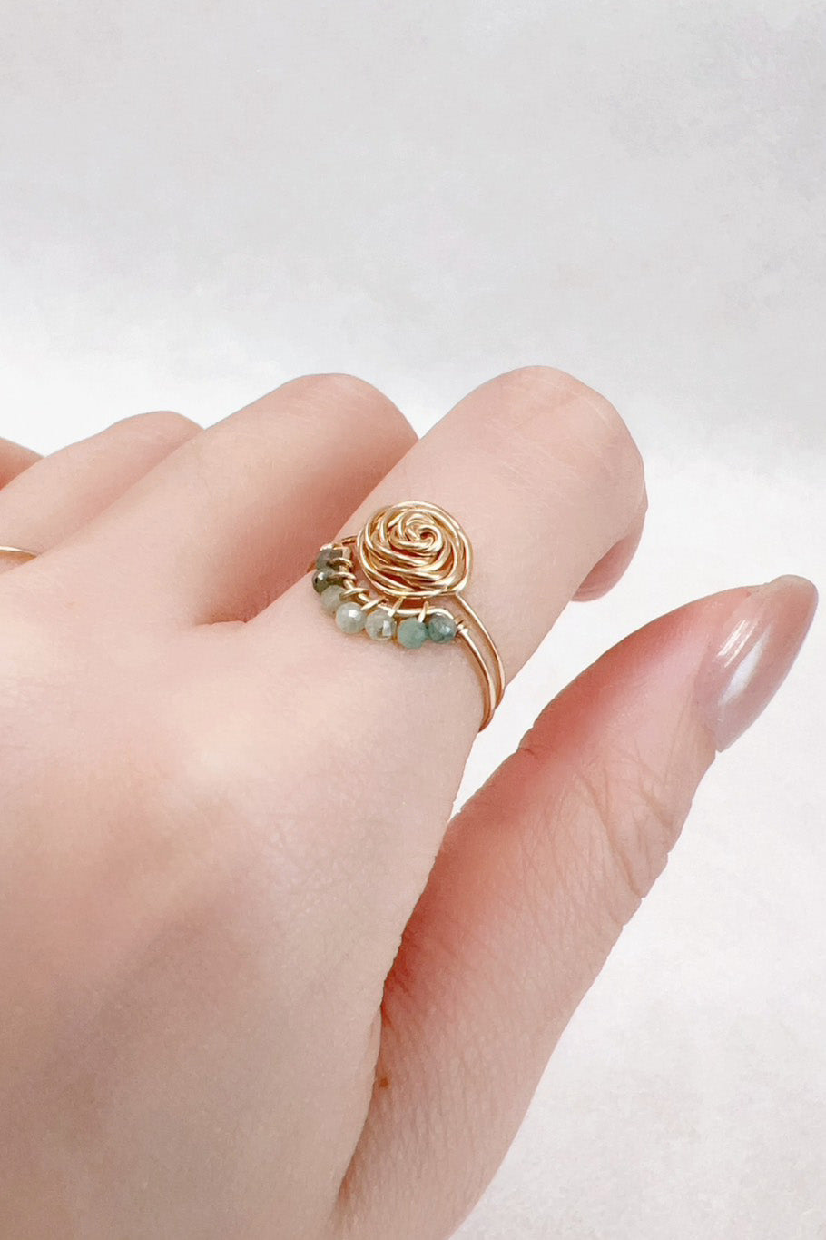 天然寶石以放射狀排列組合,猶如孔雀羽翼般綻放,璀璨的光芒在指尖舞動,微笑曲線的設計,恰如其分地演繹著柔美的流線,無論是與單顆寶石戒指還是玫瑰戒指搭配,都能巧妙融合,為手指增添一抹獨特的光彩與柔情。