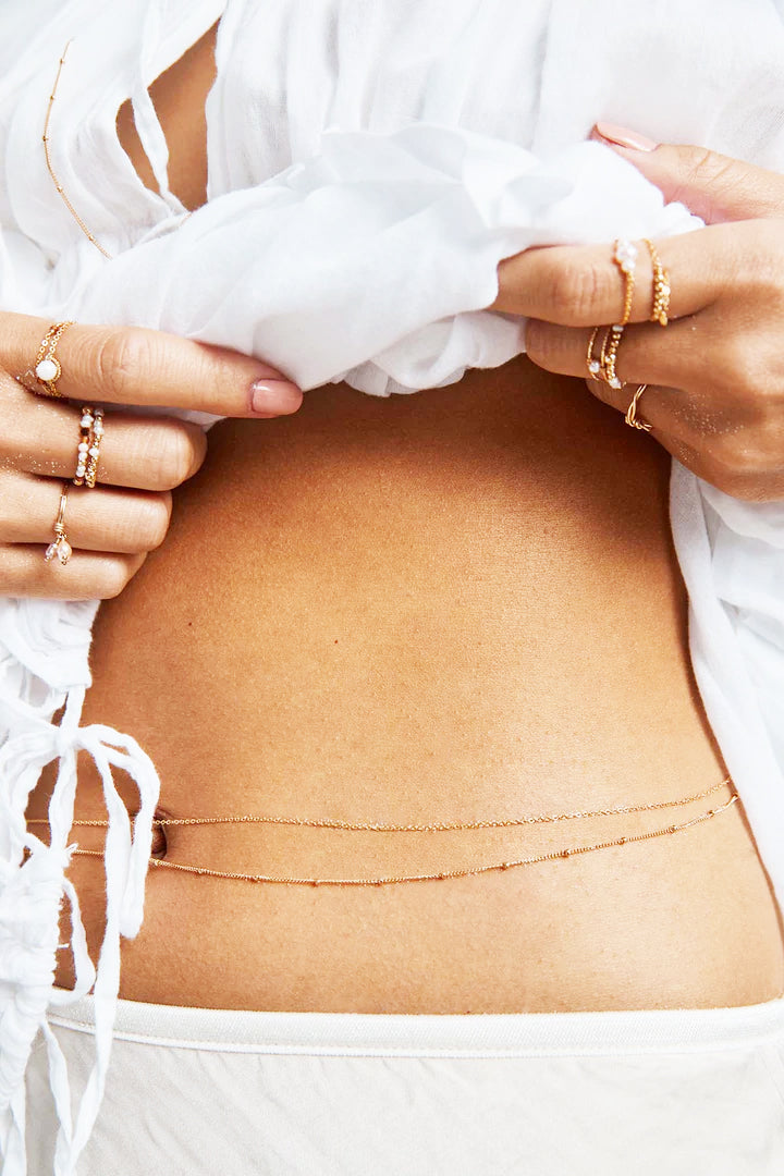 這款腰鍊巧妙地強調了腰部的曲線,雙鍊設計更添一抹慵懶的垂墜感,散發出無與倫比的柔美氣息。