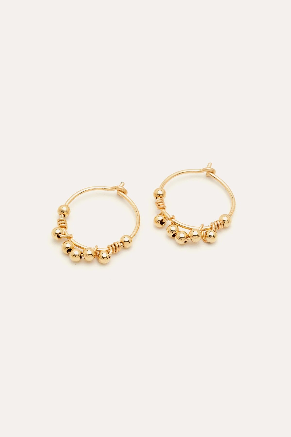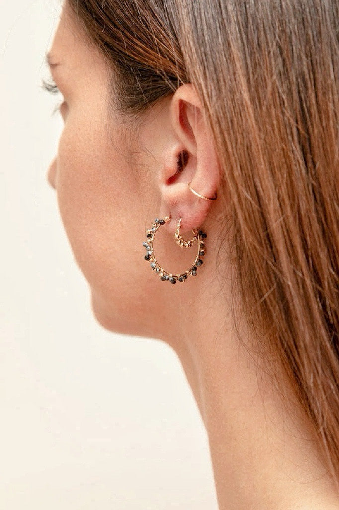 細緻排列的金珠宛如柔美花邊,環繞於耳垂間,低調卻閃耀著動人光采。