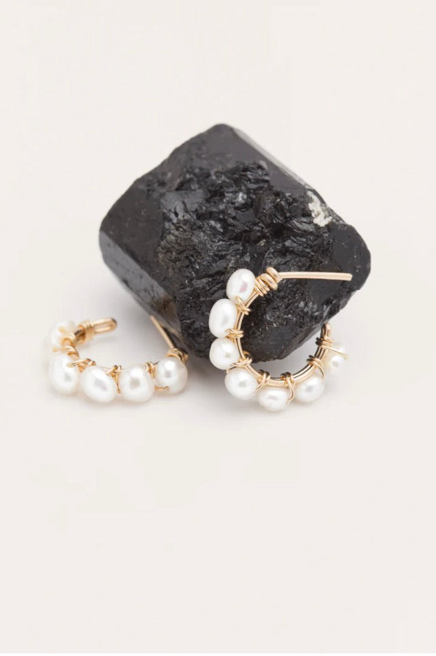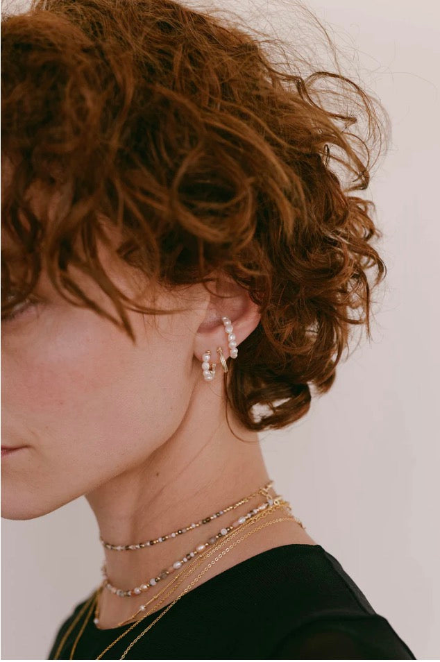 Petites Créoles Bouton - Bouton珍珠編織耳環